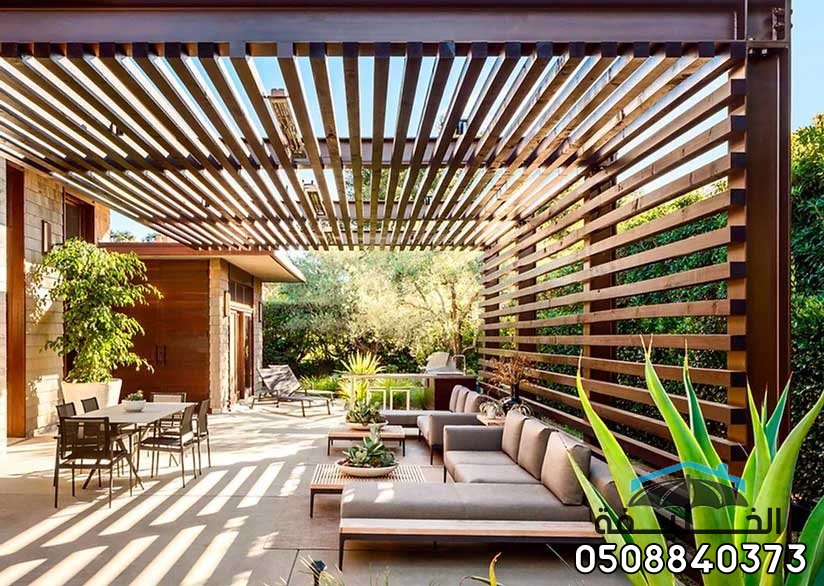 تساعد في تقليل درجة الحرارة في الحديقة وتوفر منطقة مريحة للاستمتاع بالهواء الطلق دون أن تكون معرضًا لأشعة الشمس المباشرة.