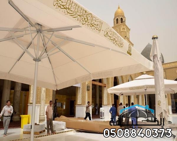 توفر مظلات ساحات المساجد ظلًا واقيًا يحمي المصلين من أشعة الشمس الحارقة ويخفف من تأثيرات الحرارة العالية.